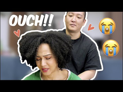 Korean Husband Tries To straighten My Curly Natural hair